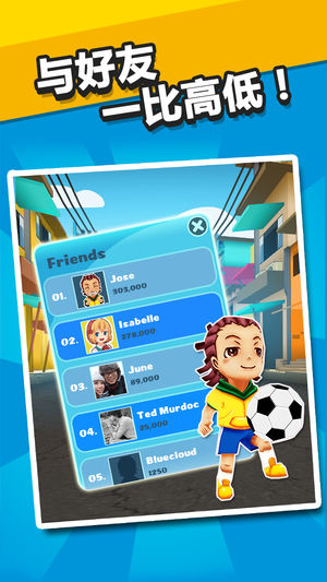 何塞能否赶得到梦想中的足球明星大赛?!指引何塞仔在繁华的里约街道上奔跑,专心跳跃躲避前方的所有障碍和后方紧追的裁判员桑托斯!使儘全力向前冲刺,别让愤怒的裁判员捉到! 游戏介绍 - 使儘全力向前冲刺,利用你神奇的滑动技巧闪避、躲避前方的障碍物! - 解锁并升级永久特别技能 - 超越好友的高分,踢开他们的图像,搞笑度十级,绝对让你捧腹大笑! - 夺取 power-up 帮你提高总分! -「滑翔机」能让你在里约上空滑翔,顺利躲过所有障碍! - 利用「芒果吸铁」把芒果金币通通吸进你的口袋! - 装备「腾空鞋」让你跳得更高更远! -「彩虹袜」则能让你的总分双倍增加! -「护体背心」能让你不顾一切…