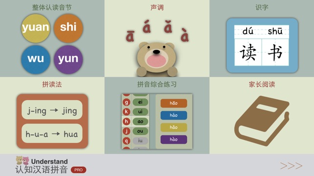 这是Understand 认知系列的第三款儿童学习应用,全新的设计理念更加符合儿童的学习特点和认知规律,是儿童开始学习拼音、认识汉字的最佳选择。 学习内容: - 23个声母 - 24个韵母,包括6个单韵母,9个复韵母和9个鼻韵母 - 16个整体认读音节 - 拼读法,包括132个拼读练习 - 声调,包括所有韵母的声调 - 拼音综合练习,包括声母韵母组合发音查询,以及940多个日常生活用字 - 识字,内容涵盖”人教版“小学语文一年级上册,汉语拼音和识字(一),共计122个生字 主要特点: - 所有拼音全都配有高清准确的发音 - 讲解与问答的互动模式,小朋友可以独立学习 - 简单有趣,避免在学习…