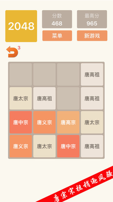 2048朝代版震撼来袭,三种模式,两种风格,来迎接挑战吧! 多种朝代模式:中国历史朝代经典版、汉朝版、唐朝版、宋朝版、元朝版、明朝版、清朝版 其中,2048中国历史朝代经典版:夏->商->周->春秋->战国->秦->汉->三国->晋->南北朝->隋->唐->五代十国->宋->辽->西夏->金->元->明->清->中华民国->中国 玩法和2048数字版相同,不同的是数字变成了中国从夏开始的各个朝代,比如两个夏合并成一个商,两个商合并成一个周...每次合并后生成下一个朝代,直到出现中国完成通关。 您可以通过微信朋友圈、、微信好友、微博、FaceBook、Twitter分享最高分给朋友,让朋友来挑战你,您还可以在GameCenter查看到您的世界排名! ______________________________________________________ 如果您有什么好的意见或者建议,欢迎致信wangping_app@sina.com,我们期待您的反馈意见!