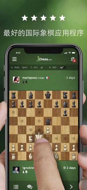 与全世界数以百万计的棋手对弈!享受免费无限制的对局并利用50000+道战术谜题,互动课程和视频,以及强大的电脑对手来提高您的棋力。今天就释放您成为国际象棋大师的潜力吧! 对弈 - 挑战您的好友并与对手交谈 - 下实时超快棋或每日通信棋 战术谜题 - 解开超过50000道谜题 - 根据您的水平进行调整以助您提高 课程 - 来自顶级特级大师们,数以千计的视频和互动课程 - 含有提示和重点的互动教程 电脑 - 调整电脑的强弱 - 分析您的对局以学习哪里出了错 …以及更多 - 顶尖作者和教练(如国际大师 Jeremy Silman)的每日文章 - 开局探测器帮助您学习并走出正确的开局 -…
