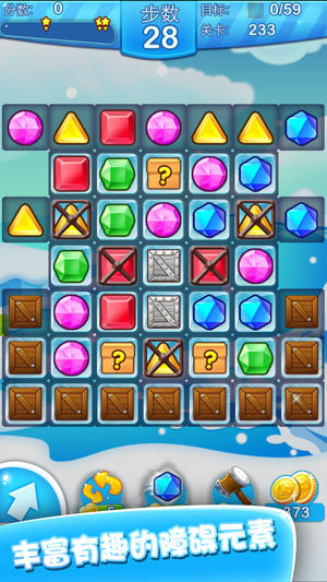 冰雪爱消除,连接宝石,解决谜题。超好玩的冰雪主题消除游戏,在冰雪世界中挑战六种目标,上百个关卡。冰雪爱消除简单而又富有乐趣,非常容易掌握,却又充满挑战,快来开动你的大脑,现在下载闯关吧! 游戏特色: -精美的冰雪世界,闪亮的宝石 -丰富的玩法,富有挑战的目标 -数百个精心设计的关卡 -完全免费,不需要网络