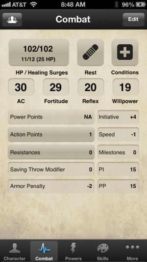 i4e is a character sheet replacement for 4th edition D&D allowing you to store multiple characters on your iPhone, iPod Touch or iPad. It will track your character's ability scores, hit points, powers, skills, feats, weapons, armor, action points, milestones, rituals, items, and notes, providing you…