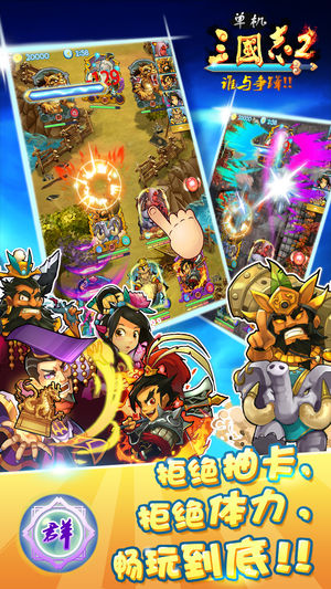 还在送赵云貂蝉吕布吗?弱爆了,下载即送十大武将!!! ◆中国区Top 1单机卡牌游戏续作!◆ ◆单机卡牌游戏巅峰之作!◆ 游戏特色: 1)技能组合,蓄力技能,技能打断,策略玩法大升级! 千种技能组合搭配,前排后排,左中右排站位,多变的玩法,操作和策略。 2)合体技! 痛快淋漓的合体技系统,简单刺激的触发方式,给您前所未有的战斗体验。 3)六大职业系统! 六大职业,六大天赋,职业定位更加明确,玩法更加多变。 4)三大模式! 故事,自由,挑战三大经典模式,等您来战。 5)三线剧情! 全新的角色造型配合全新的剧情,给您不一样的三国故事体验。 ※ 注意:如删除该应用时,游戏内的所有数据也会随之被…