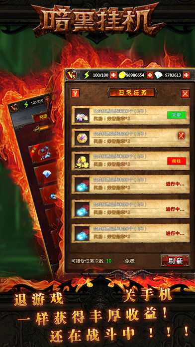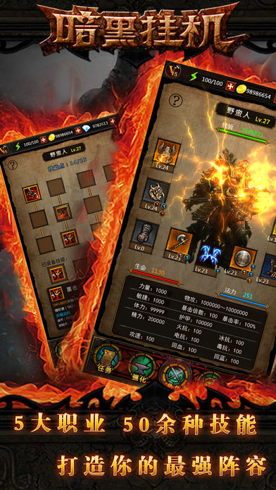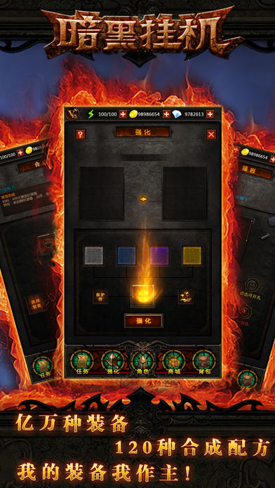 ▶“懒人有福了”! ▶轻操作、高粘度! 一款高度还原暗黑的全新半放置RPG。 玩5分钟绝对上瘾! ===========游戏特色======================== ◆随机地图,经典boss,过百关卡,亿种装备! ◆经典职业,百种技能,组合百变战术流派。 ◆各种合成配方和词缀,助你改装装备,更上一层楼! ◆退游戏、关手机,都不影响挂机刷怪,还在战斗中!!! 一起来探索惊心动魄的冒险世界,搜寻远古遗迹中的神器! ===========内容介绍==================== 玩家需通过各种不同挑战方式的关卡,通过的关卡可挂机轻松收获大量经验装备。 升星、镶嵌、铭刻、洗炼完美度等手段强化装备, 搭配自己喜欢的阵容,血拼各大经典boss。 合成配方多达上百种,既有常用,亦有奇葩和偏门, 一个系统,千般玩法,只有想不到,没有做不到。 新手推荐多刷兑换铺,多从日常任务中收集勋章,击败boss收集恶魔 之心,否则看到垂涎的极品装,没有足够的材料,就急眼啦! 充足体力时可勤奋开图,争取找到一块多宝箱、多精英的好图,挂机时才能 财源滚滚!若喜欢手动还可在探索时连杀怪物,获取高倍奖励! 总之即可懒着挂机玩,也可勤奋粘着玩,无论你是哪类玩家,都可从中找到 属于自己的乐趣...... =========版本福利======================= ◆下载即送 100 钻石! ◆升到10级再送 88 钻! ◆良心游戏!!每日登陆再送多多钻!