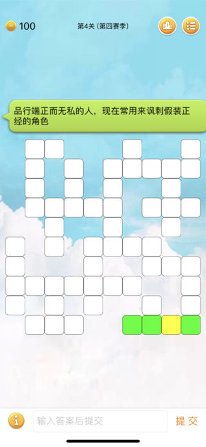 这绝对是目前最棒的中文填字游戏,我敢保证它绝不会让你失望! 只要你认真玩到十五关,你就会发现你早已欲罢不能! 快来扩大一下知识面,成为大家眼里的百事通! 应玩家要求,现已移除游戏内所有广告。 --【游戏特色】-- 中国最纯粹的休闲类益智游戏. 这里没有竞争.无聊的时候玩一玩,进度实时存储,等公交、坐地铁、蹲坑...任何时候都能继续玩,消磨碎片时间必备游戏! --【好评如潮,不胜枚举】-- “这个游戏很益智,资源多,难得的精品,希望一直更新不要停...” “内容丰富,更新迅速,爱不释手!” “第一次遇到如此喜欢的文字游戏!” “这么好的填字软件你上哪找去啊?” “这游戏不火没天理啊,我每天…