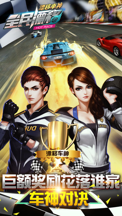 全球第一实时对战赛车手游《全民漂移:漂移车神》呼啸来袭,开启实时竞速飙车时代,暴走漂移点燃你的车神魂! --独创:4车同屏实时对战,真实上演生死时速! **「生涯模式」逐关突破,「地下对决」和「黑暗狂飙」更是飙车技术和娴熟操作的综合表现。「双人对决」是好友间「单项技巧」比拼的舞台。「车队赛」和「车队精英赛」将体现出团队实力与配合的同时,更有丰厚的「车队奖励」等着你!** --刺激:无限氮气免费喷射,极速漂移助你登顶PVP一代车神! **两大操作系统,四种操作模式,随心转换不再是梦;无论是左撇子还是右撇子,可按照自己操控习惯自由变换。传统的重力感应操作,让你身临其境,就像手握方向盘在开车一样;而滑动操作简单创新,动态捕捉屏幕触摸位置,按住方向条,左右滑动即可顺畅转动方向过弯!** --养眼:车模陪驾,享受速度的同时带来更贴心的领航服务! **七位不同特色车模陪驾,七种不同声效演绎不同的领航服务,更有让你欲罢不能的女郎养成系统** --风骚:更加炫酷的涂装皮肤系统,让你的爱车与众不同! **五大区域,20款车贴、十种颜色随心搭配。打造出一辆辆独一无二的专属赛车!赛车拥有不同属性,通过改装升级可培养出完美超级赛车!而赛车的表面有着「实时反射」与「反锯齿效果」,让画质格外出色!** -- 3 D:实地取景,U3D还原真实赛道,体验身临其境的动态极速飙车! **想体验“全球最寒冷赛道--卡尔斯塔德冰雪赛道、赛车条件最严峻的赛道--阿塔卡马赛道、日本最险峻的赛道--秋名山赛道、亚洲第一条F1街道赛道--新加坡F1赛道”吗?《全民漂移:漂移车神》统统让你身临其境。当然,游戏内还有更多别样的风景等待玩家们去探索!用速度将城市霓虹变成幻影,极速穿梭于阳光普照的绿荫丛林之间,生死时速,真实再现!** --福利:超多福利免费领取,送车送钻送珍稀道具,让飙车更加随心所欲!