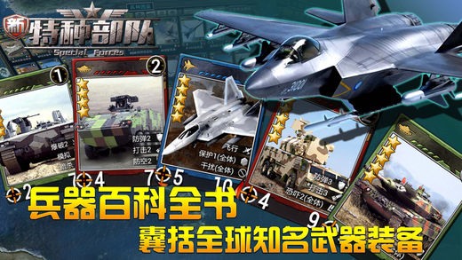 策略军事卡牌《新特种部队》-SpecialForces 《新特种部队》是一款以现代反恐战争为背景的军事策略卡牌游戏,展现了以中俄美为主导的大国集团与极端恐怖组织对抗的故事。游戏中,玩家将扮演一名反恐指挥官,收集卡牌组成最强阵容,迎接各种挑战。 以现代战争为题材,面向广大军事爱好者,五大阵营、海陆空三体展现大国军事力量。 经典纯卡牌玩法: TCG策略玩法,经典万智牌游戏机制,融合游戏王的战斗后带来更加深度的内容; 小数值展现超强竞技策略: 更清晰的展现战场局势,方便玩家把控战局,从而让战斗充满策略和变数 组牌策略: 不同卡牌间的技能组合带来无限的组牌空间,根据个人的策略喜好组成与众不同的最佳战队,快攻还是控场,随心打造 出牌策略: 根据场上形势,选择合适的卡牌进入战斗,往往关系到整个战局的胜负 巅峰对决: 跨服务器竞技战斗,五分钟一场策略对决,超神之路竞技体验更畅快