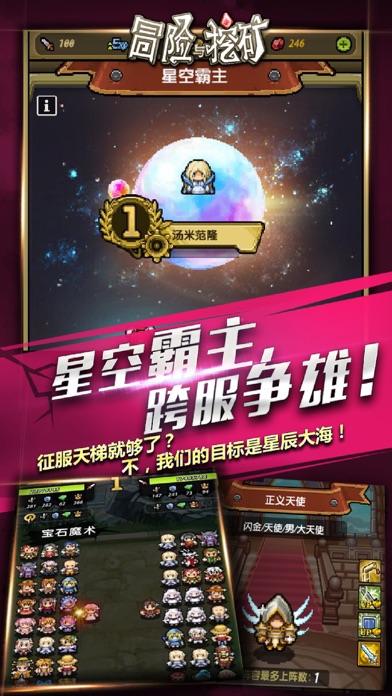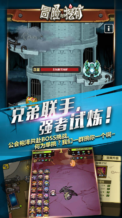『一款很有个性的像素挂机手游』——陈星汉(风之旅人制作人) 『这是一款用cocos引擎制作的好游戏,它的成功刚刚起步』——陈昊芝(触控CEO) 『这游戏太兹了,有一起来玩的加好友,一区小荣117』——小荣117(ImbaTV创始人) 『如果你找不到我,我一定是在从冒险到挖矿的路上』——应书岭(英雄互娱制作人) 『冒险与挖矿给沉闷的手游市场一剂强心剂』——黄一孟(心动游戏CEO,VeryCD创始人) 『最近半年难得入坑的国产游戏』——张琦(高能贩创始人) 『连续玩两礼拜了,这游戏是我的菜』——徐安平(地下城堡制作人) 『这是个颇有趣味的游戏,值的细细品味一番』——鬼人(火柴人联盟制作人) 二次元的世界惨遭邪恶力量入侵!勇敢的少年快来创造奇迹!进入被黑化的二次元世界,招揽各路二次元仲间,组建属于你的复仇者联盟!碾压邪恶战五渣、碾压邪恶战五渣、碾压邪恶战五渣!重要的事情说三遍! 《冒险与挖矿》一周年庆典,激爽跨服公会战,劲爆来袭! 多重pvp对战让你充分体验与人斗其乐无穷! 特色英雄季,玩家全程参与全新英雄设计,与策划比比谁的脑洞更大更离奇! 《冒险与挖矿》将像素与情怀、策略与休闲、动漫与现实完美融合。游戏中包含英雄乱战、冒险闯关、地心挖矿等各色玩法,结合休闲挂机放置玩法,让玩家惊喜连连。游戏汇集动漫明星、游戏名角等数百位二次元经典形象,25V25的时空大乱斗,多种玩法教你什么是策略式挂机! 游戏特色 1、轻松游戏 冒险小秘书一键推荐上阵,轻松布阵应对各种挑战!推图推不过,英雄看不懂?独创WIKI式评论交流区,完全内置游戏,第一时间入手高玩经验,助你轻松布阵! 每天15分钟轻松游戏! 2、超多英雄 300+海量英雄,神话神祗、超级英雄、动漫明星、游戏名角、网络红人,电竞大神!一个都不能少!全妹后宫流!兄贵搞基流!冒险动物园流!你的阵容你做主! 3、流派丰富 25V25豪华阵容!先攻、防御、闪避、王者!四维属性演变千种策略,自由组合! 四大流派分庭抗礼,全新流派虚位以待,你将会是颠覆格局的新王者吗? 4、无限挖矿 隐藏BOSS,神秘宝箱……独有无限矿区玩法,自己动手丰衣足食!贴心矿区工坊设计,一觉醒来稀有矿石装足口袋!丰富矿区挑战系统,钻石、经验、矿石、宝石、极品道具打败魔王就能抢! 5、多重PVP 排名赛,竞技场,跨服公会战!限定闪金英雄、极品道具、珍稀矿石免费换,丰厚奖励等你拿! 场场都是决战紫禁之巅! 6、趣味PVE 蠢萌个性佣兵,爆笑腹黑剧情,趣味吐槽对白,汇集全宇宙段子手,每一场关卡都是一次趣味无极限的勇者派奇幻之旅。 ======联系我们====== 《冒险与挖矿》官方网站: http://www.mu77.com 《冒险与挖矿》官方QQ群:473218408