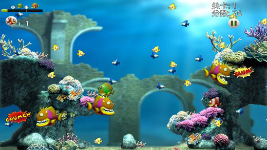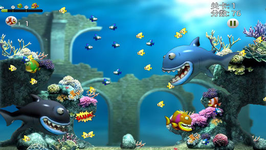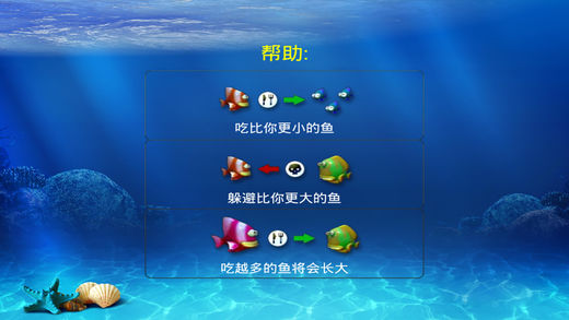 美丽的大海,有时看似风平浪静,实则暗流涌动;有时看似波涛汹涌,实则波澜不惊。 海底一个个凶神恶煞的额鱼类,身为小鱼的你知道该怎么做了,没错,这是一个弱肉强食的地方,拿出你的勇气,将自己从小吃到大。冒险去吧! 玩法: 进化需要一定量的不同类型的小鱼,如果吃了错误的比自己大的鱼,或者碰到了水母,则会损失生命。当你在有限的生命里完成进化,则通关。小心不要碰到水母哦,它会把你撞晕,让你不能动弹的! 在存在各种各样的危机的深海中,能生存下来的都是强者。快和您的小伙伴一起为成为海上霸主而努力吧!难道你甘愿做一条毫不起眼的小鱼吗,甘愿被无情地蹂躏吗?为了生存,你必须通过自己的努力,不断成长,变大变强,成为这片大海的王者,这样任谁也不敢无视你们的存在了!