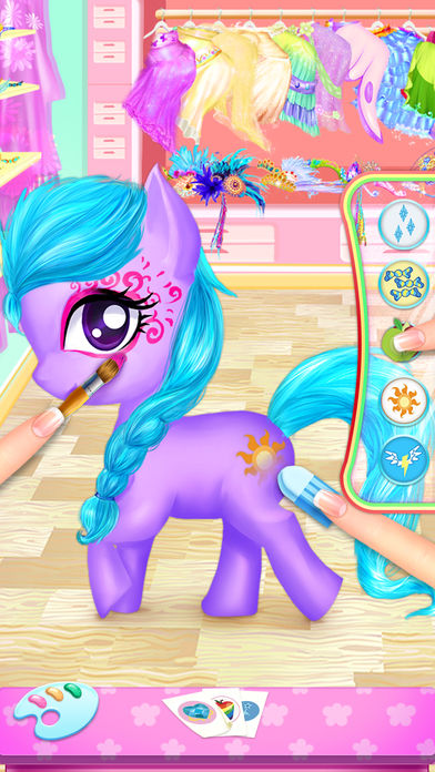 今年最火的卡通人物魔法小马来啦!你是不是做梦都想有一匹属于自己的小马呢?在这个彩虹的世界里,你可以自由为你的小坐骑装扮换装,还能拥有魔法的力量! Meet Aurora Twinkle, Thunder Glow and Bluegrass Hooves – three beautiful, wonderful magical ponies! Do you love ponies? Sure, who doesn’t? What about magical ones? Even better! You love playing dress up with dolls, but do you know what’s even better? Dressing up magical ponies! Magical Pony Salon lets you experience the joy of taking care of a magical pony and giving them the makeovers they always wanted! So cool! Make the ponies as clean and beautiful as can be in the spa stage! Choose from a variety of gorgeous make up in the make up stage! Help pick out beautiful dresses and wings in the dress up stage! And snap lovely pictures of the ponies in the photo stage! How exciting! Ever wanted to play with a magical pony? Now’s your chance! Magical Pony Salon allows you to pick one of these three gorgeous girls to take to the doctor and make beautiful! Getting to know these ponies gives you an idea of each one’s unique personality…get to know them all! With Magical Pony Salon, every day is salon day! FEATURES - Three beautiful magical ponies – your new best friends! - Clean them up, keep them healthy, make them beautiful! - Take a picture to show your family what you did! HOW TO PLAY - Select your favorite magical pony! - Use the touch screen to pick makeup, clothes and wings! - Draw on the photo and place cute stickers in the “Draw” stage! [[ You can find out more fun games on our partner's social media! ]] If you want to check us out, visit our website: www.fashiondollinc.net Join our fanpage on Facebook! https://www.facebook.com/pages/Fashion-Doll-Inc/541320739345559