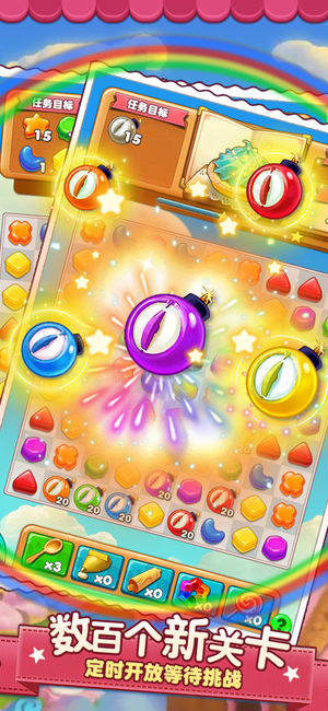 最萌最可爱的消除游戏! 小怪兽在糖果星球上的奇异冒险 全新版本!更多的关卡,更多的玩法 最新精心制作的UI画面,给你不一样的体验。 富有挑战性的闯关地图、梦幻甜美的糖果风格、丰富趣味的音效、 爽快流畅的手感,以及独创的微策略消除玩法,带给玩家最高品质的休闲互动体验。 **数百个经过精心平衡过难度和趣味性的关卡. **数十种触发连锁,连消,爆炸,交换,升级的神奇道具. **风格迥异的数十张地图世界,等你探索奇妙之处! **全新设计的UI,给你焕然一新的感觉! **匠心独运爽快手感的活动玩法,最畅爽的消除体验!. **上手容易,放下很难.百万玩家等你一同体验 每天都有新收获,记得每天来登录哦…