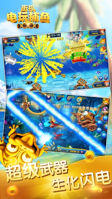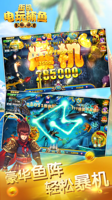 首款竞技捕鱼,得名次,赢奖品,成为捕鱼之王! ■荣获2015年ACG最佳街机游戏奖■ ■App Store五星推荐,捕鱼游戏中唯一全五星好评,值得拥有■ ■唯一一款全联网捕鱼,完美移植街机厅!如同身临其境!■ ■3D酷炫领奖台,尊享竞技之王,更有神秘大奖等你来赢。■ ■电玩城的经典,带你完爆所有捕鱼游戏■ 1. 2016电玩城最火爆捕鱼游戏,华丽登场,娱乐场免费抽奖。 2. 真实100%还原捕鱼达人千炮版,街机捕鱼,千炮捕鱼、金蟾捕鱼等所有街机捕鱼版本,同时增加了闯关提升趣味性。 3. 一网打尽、大三元、大四喜、同类炸弹,全屏炸弹、能量炮等经典玩法。 技能介绍: @比赛:首创比赛模式,万人同时竞技。使用超级武器勇夺第一名吧! @远征:独创远征玩法,各种大小BOSS守关,过五关闯六将,成为捕鱼至尊! @激光炮:激光所过之处鱼儿皆受到伤害,抵抗力稍有不强的鱼儿就会被收为囊中之物。 @范围炮:指哪打哪,Boss克星;点击目标,范围炮发出的炮弹直指目标,大幅度提高暴击指数和杀伤力,超强的重炮打击感。 @采金船:充值越多,彩金越大。玩的更爽! @界面:邀请知名眼科专家合作,首创清新不伤眼画面。 @音效:3D环绕杜比音效,让您身临其境,捕鱼爽翻天。