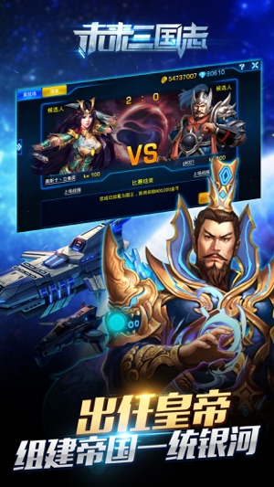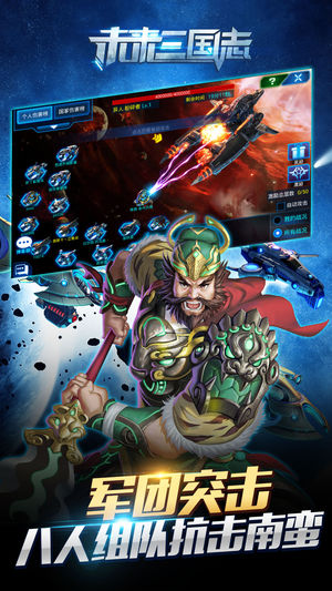 ***定位*** 太空版三国志策略国战手游 ***卖点*** 1、出任皇帝,组建帝国一统银河 2、太空国战,50v50引爆全局战争 3、三百名将,驱舰奔袭逆命重生 4、军团突击,八人组队抗击南蛮 ***短介绍*** 《未来三国志》是首款太空版三国志策略国战手游,三国群英在千年后的太空时代复活!银河、太空舰、帝国、战争⋯⋯当三国遇上银河,给你不一样的策略国战体验!《未来三国志》独创皇帝大选玩法,出任皇帝,任命帝国内阁一统浩瀚银河;三国鼎立国战不休,在无限太空上体验50v50的究极星际大战;千年前三百名将逆命重生,冷刃变巨舰,征战星辰大海颠覆传统三国;军团式真人社交玩法,实时组队共征星海…