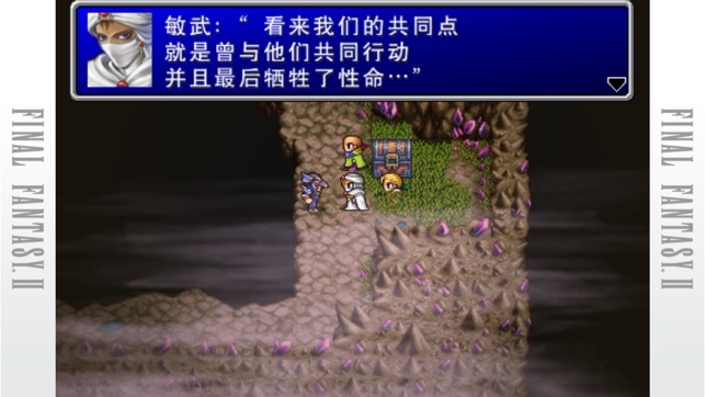 《FINAL FANTASY II》 于1988年发售,是《FINAL FANTASY》系列备受期待的第二款作品。 企图征服世界的帕拉美奇亚帝国军与反抗军展开了激烈的战争,4名主人公由于被卷入其中而变成了孤儿。整个游戏以他们为中心,展开了一段既动人又悲壮的梦幻剧情。 本作废除了等级制,取而代之的则是“熟练度系统”,玩家可以根据自己的喜好来决定主人公的成长风格。剧情方面则引入了全新的“词语记忆系统”,记住对话中的关键词成为了推动剧情发展的关键。本作可以说是引导系列不断追求进化发展的开端。 在游戏中同时还收录有之前的移植作品中新追加的两个特殊迷宫——“重生之魂”与“秘纹之迷宫”。