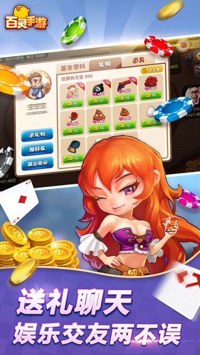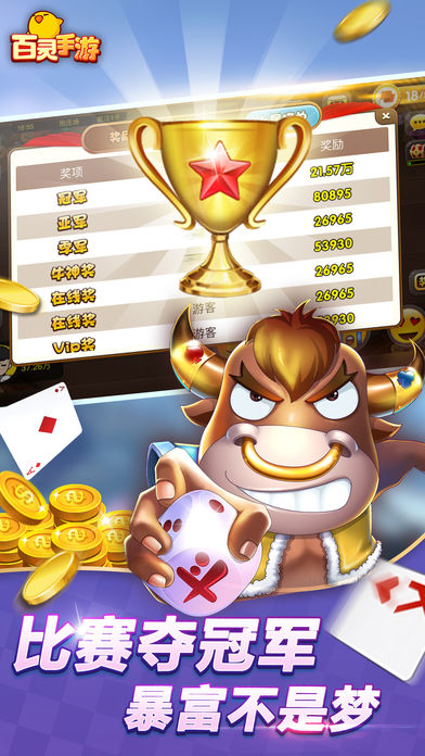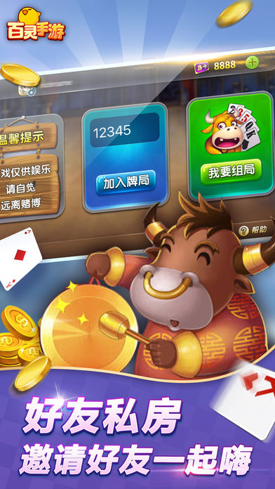 “老妹儿,斗地主不?” “不斗” “打麻将不?” “不打” “那整不?” “滚粗,姐玩牛牛。” “别拼了,没牛就是没牛。” “天灵灵,地灵灵,来把牛牛吧。” “天呀!我又捡到一分钱,赚死了啦。” “从天堂到地狱,姐路过人间。” ◆ 老子不斗地主,老子不打麻将,老子要斗牛牛!百灵手游系列精品棋牌游戏中的牛牛游戏,界面舒适清新,挂机聊天,抢庄和通比,体验最牛、最疯狂、最欢乐刺激的斗牛棋牌享受和交友乐趣。 ◆ 游戏特色: 1.抢庄为传统的斗牛玩法,大家争抢坐庄; 2.通比即QQ斗牛世界大战,最大牌通吃全场; 3.更有炸金牛、百人场、竞技场等多种玩法; 4.每天送超多筹码,自动挂机欢乐畅聊交友; 5.快速开始,2人成局无需等待,6人一桌热闹刺激; 6.手动拼牌和系统拼牌任意选择,上手极其简单; 7.蔬菜大乐透,道具丰富,休闲放松的最佳选择。 ◆ 牛牛又名斗牛,两人以上即可玩的扑克游戏,玩法简单有趣,上手快,娱乐性强。博的不仅是运气,还要分析数据,选择对策,才能常胜。有别于斗地主、德州扑克、麻将、飘三叶、三人斗、双扣、升级等扑克游戏,节奏很快无需费脑。还可像休闲益智类的打飞机、天天酷跑、爱消除、飞车、节奏大师那样直接分享成绩和排名,赢了就分享到QQ、微信、微博、陌陌中得瑟得瑟。 ◆ 百灵手游,专注制作手机精品棋牌休闲游戏,已出品百灵斗地主、百灵麻将、斗牛牛、百人牛牛、炸金花online、百灵德州扑克、百灵街机捕鱼等多款精品扑克牌游戏,获得广大棋牌爱好者的支持和好评。用心制作的好游戏,娱乐交友,快加入吧! ◆ 温馨提醒:适度游戏,坚持锻炼,享受生活! ◆ 微信公众号:百灵手游,客服QQ:10249203。