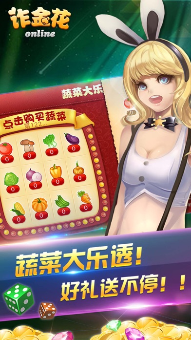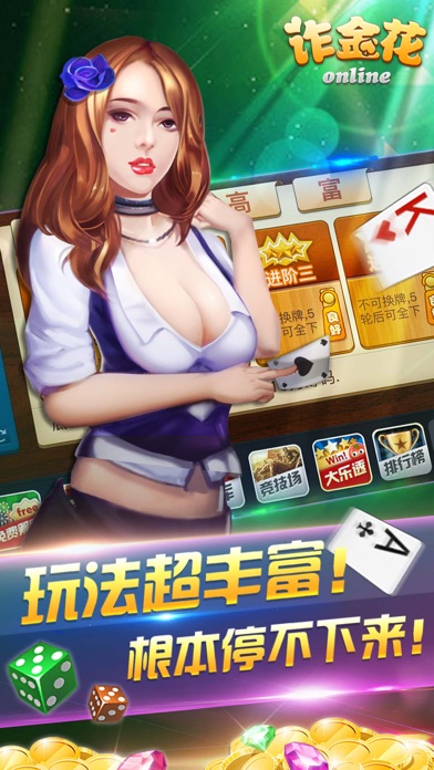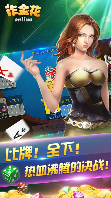 “我全押上!要玩就玩大的,你不会不敢吧?” “梭哈?这正是姐想要的!” “我能说脏话吗?不能,那就没了!” “想诈我,你还嫩点。男人要有钱,和谁都有缘。” ◆ 诈金花又名炸金花、扎金花、飘三叶或翻三张,公认的最受欢迎的三张牌游戏,支持单机和联网,闷牌、跟到底、梭哈等多种玩法。轻松温馨的画面、各种各样的玩法,给玩家最疯狂的交友乐趣和最纯粹的棋牌享受。体验平时与朋友玩一样的乐趣和刺激,手机上玩法最全最过瘾的诈金花,值得拥有! ◆ 诈金花online游戏特色: 1.界面清爽,极少操作,轻松又刺激的棋牌游戏。 2.单机不用流量自个儿乐,联网和牌友一较高下; 3.早晚系统自动补充筹码,随时进游戏都能玩; 4.全下、跟到底、闷梭、换牌,你喜欢玩啥就玩啥; 5.偷鸡抓鸡,斗智斗勇,高富帅和白富美都爱玩; 6.争抢随机出现的宝箱,比得不是反应,还有网速; 7.竞技场PK,蔬菜大乐透,主菜后的甜点不容错过; 8.丰富的道具,爱她就给她加点魅力吧。 ◆ 联网真人对战,汇聚各地玩家,高手云集,挑战您的胆略与智慧。有别于欢乐斗地主、牛牛、德州扑克、麻将等扑克游戏,给玩家最欢乐刺激的享受。 ◆ 温馨提醒:适度游戏,坚持锻炼,享受生活!