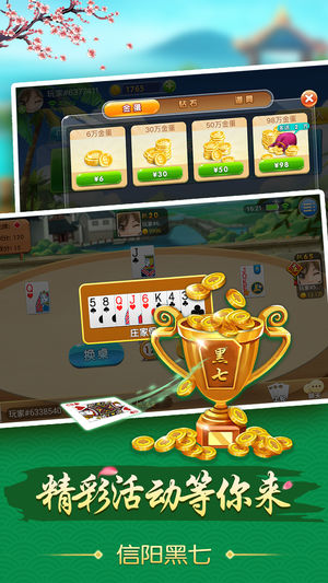 河南信阳独家首发游戏。 信阳黑七--顶尖游戏团队良心之作,我们信阳人的游戏。 信阳人,必须让经典文化永久流传下去。 【产品简介】 河南省信阳市以及附近地市的一种双副扑克牌游戏,玩法起源于信阳,7为常主,故称信阳黑七。 【玩法特色】 1、河南信阳的正宗地方打法,真人实战。 2、人性的操作,充分考虑玩家的使用习惯,操作简单,轻松上手。 3、与黑七电脑玩家同场竞技,更酷游戏体验。 4、人气火爆的手机升级游戏,随时随地随便玩 【游戏特点】 省流量配桌速度快。 详细精准的地方规则,7常主。 规则简明、对抗性强等特点,易上手。 线上交牌友,线下可谈心。 随时随地切磋一局。