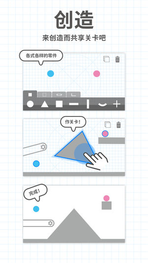 让两球相撞吧,物理益智游戏 脑点子 全球下载突破3500万! 过关仅需要使两球相撞。 这些看似简单实际上困难重重的关卡,你能够成功的突破吗? 老少皆宜的脑点子游戏等待大家来挑战! ▼ 游戏规则简单 ◆ 撞球 要想过关,只需要使蓝球和红球相撞。 自由划线可以让球滚动,你的想象力是过关的关键。 ◆ 收集画笔 从铅笔到彩色铅笔,蜡笔等等,我们准备了各种颜色形状的画笔。 收集各种画笔勇敢的闯关吧。 ◆ 分享过关的喜悦 你可以通过图片或者视频来重新回味闯关的过程, 然后分享这些图片或者视频给你的朋友。 通过观看朋友的视频你也能够得到闯关的经验心得。 ◆ 创造关卡 你也来创造关卡,而发布给大家…
