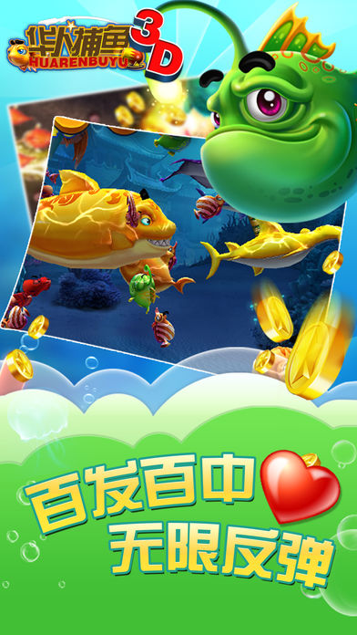 华人捕鱼3D是一款华丽畅快的超级3D捕鱼类游戏。 游戏特色 -完美移植街机捕鱼游戏。 -丰富的捕鱼场景。 -新鲜的画面视觉体验。 基本玩法 -本款游戏的基本操作与PC版类似,点击屏幕发射炮弹打到的鱼越多得分也就越高,炮弹有大小之分。 -鱼也有种类之分,想要打什么样的鱼,需要用什么样的炮弹,还需要你亲自斟酌一番哦。 -完全继承了PC版中的BOSS系统、鱼阵系统。 -完美移植街机版中特有红鱼、全屏炸弹、鱼阵等经典玩法。