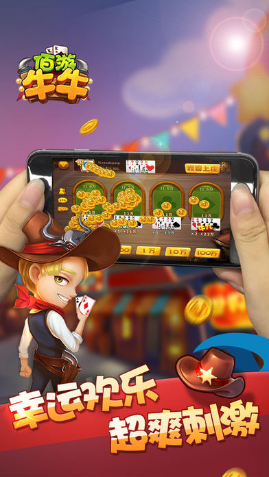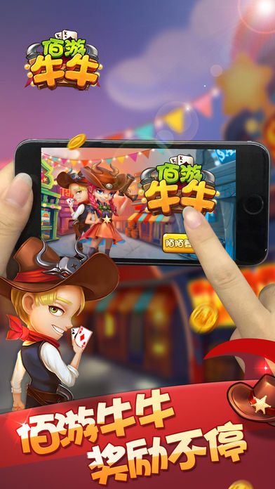 【游戏介绍】 《佰游牛牛》又名佰游斗牛douniu是2015年最经典超刺激的联机扑克游戏 《佰游牛牛》在传统斗牛的基础上,加入陌陌社交元素,做到真正百人同桌游戏! 融合波克和博雅简易上手特点,男女老少皆宜,比拼玩家的胆略、智慧、以及运气,是一款休闲娱乐消除疲劳的必备单机电玩游戏。 【游戏特色】 1、佰游牛牛,天天欢乐上线玩,筹码轻松赢得手 2、佰游牛牛,酷炫特效:通赔通杀满屏刷。 3、佰游牛牛,每天签到送金币(筹码),每月签到送大奖 4、佰游牛牛,2人成局无需等待,5人一桌热闹刺激 5、佰游牛牛,新版即将退出娱乐厅,包含拉斯维加斯和澳门赌场小游戏(casino):二十一点、轮盘、推币机、老虎机、宾果、百家乐、森林舞会、转盘、连线和跑马等 【友情提示】 玩佰游牛牛,分享游戏到微信、陌陌留言板都可以获得大量金币哦