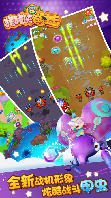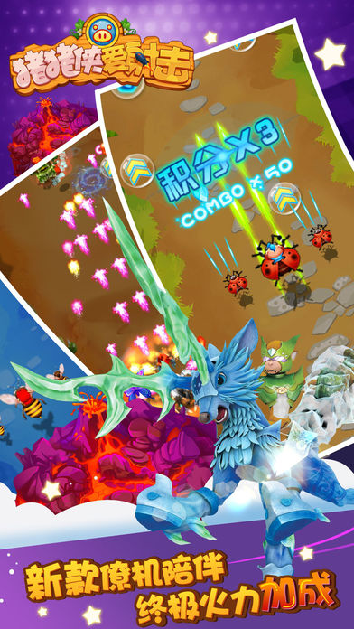 500多所小学校老师推荐!猪猪侠是近十年来长盛不衰的国产卡通动漫,由Y2Game代理,官方正版授权手游的《猪猪侠爱射击》是一款飞行射击类游戏,在游戏中你可以与猪猪侠、菲菲、小呆呆等小伙伴并肩作战,还可以与铁拳虎、火焰鹤、冰封鹿一起飞起来! 《猪猪侠爱射击》本次特意增加新角色——超人强的小助手、将猪猪侠视为死敌的蠢萌小坏蛋“波比”!超可爱人气主角之一的波比的加入一定能让猪猪侠与小伙伴们的冒险之旅更加丰富多彩! 最有趣的王牌空战,最萌最炫的战斗特效,最可爱的打飞机,就在《猪猪侠爱射击》!
