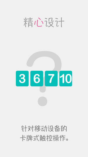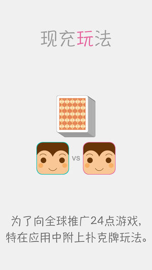 ◆◆起源于中国,光大于世界◆◆ 只要你拥有小学水平的计算能力, 就可以上手这款锻炼大脑,心算力,记忆力,创造力的解谜小游戏。 ■□玩法□■ 用4枚数字卡片和四则运算算出24 ※四则运算指加法,减法,乘法,除法 「有无数种解法的关卡」 「也有只有唯一解法的关卡」 「有的人10秒就能算出答案」 「有的人永远算不出答案」 先试试第一关教学关, 10秒钟你就能迅速掌握游戏玩法和规则。 ■□分享结果至社交网络□■ 通关后一键分享通关截图,挑战全世界玩家, ※但不分享通关过程以免游戏丧失可玩性。 ■□隐藏关卡□■ 游戏内附加难关出现率超高的关卡包 ※可完全免费解锁 ■□现充玩法□■ 为了向全球…