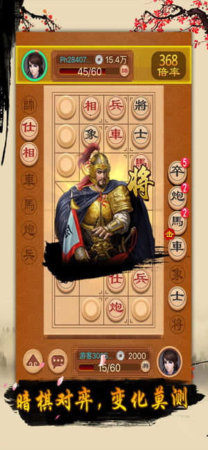 中国象棋是一款具有浓郁中国特色的益智游戏,新增的暗棋玩法,趣味多多,更有不同类别的残局等你挑战。不断优化的智能算法,让你体验真人对弈的快感,7种难度随心切换,循序渐进,让你感受中国象棋的博大精深。 【产品特点】 1. 新增好友房功能,可邀请好友一起对战。 2. 象棋暗棋联机模式,让你在棋海中大战四方。 3. 中国象棋对弈模式,无需联网,只要轻轻一点就能让享受征战沙场,斩将夺帅的快感。 4. 双人对弈,让您一部手机和您朋友精彩对战。 5. 难易度自由调节,被虐了,可以来这里慢慢锻炼然后虐回去。 6. 中国象棋残局挑战,杀法大全、象棋名谱、象棋路边摊、残局冲关等你来解。 7. 暗棋…