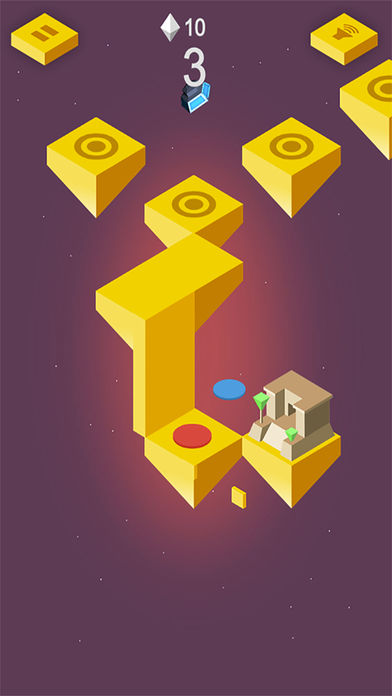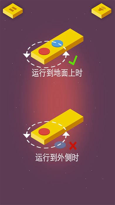 悬浮在天空的城市,通过触碰屏幕,让旋转的红蓝圆片落在黄色方块上,获得越多的分数可以解锁相应的地图