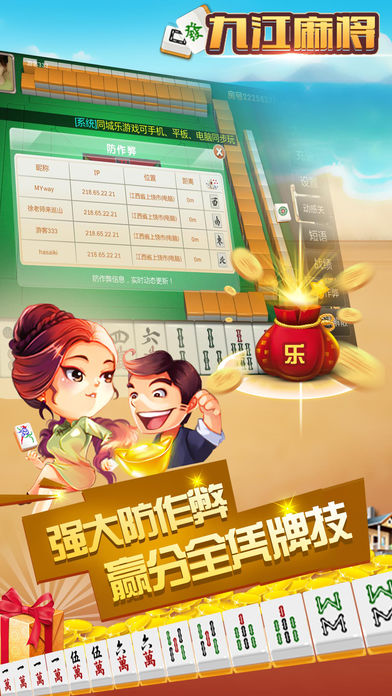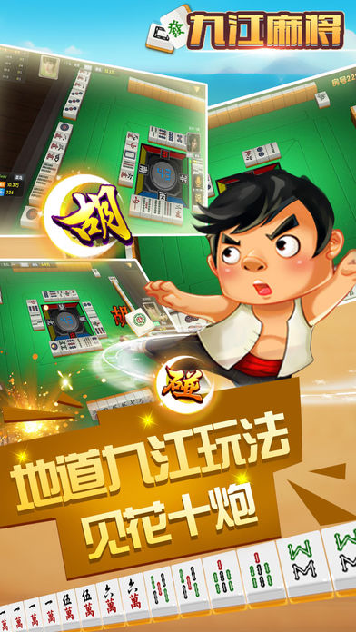 九江麻将游戏棋牌平台,万人在线,每日大奖赛,金币领不停,同城乐九江麻将是地道的九江本地麻将打法。开包房打积分随意玩,和朋友同时在线畅玩。 1.1基本胡牌牌型 九江麻将可胡的牌型包括以下几种: 平胡(33332),七对(2222222),碰碰胡(33332)。 1.1.1 平胡 胡牌时的牌型是33332的形式,此类牌型中所显示的4个3可以为顺子、碰子或杠子。 1.1.2 七对 胡牌时的牌型是2222222的形式。 1.1.3 碰碰胡 胡牌时的牌型是33332的形式,此类牌型中所显示的4个3全为碰子或杠子。 1.2 胡牌的方式 2.5.1自摸胡 自己抓牌成胡牌(特殊情况:杠上开花胡)。 2.5.2放炮胡 其他玩家打出的牌,自己可以凑成胡牌牌型,谁放炮谁负责 2.5.3天胡 庄家发牌结束后,牌面成胡牌。 2.5.4地胡 庄家在发牌结束后,打出的第一张牌,闲家可以凑成任何一种基本胡牌牌型的胡牌。 2.5.5报听 发完牌后即听胡,可以报听,轮到自己抓第一张牌并打出一张牌后即听胡,也可选择报听。加算10炮,不再加算门清的5炮,遇到有卡牌、单钓都另加5炮,可以依次累计;其他的发财、红中等照算累加。报听的玩家被别人自摸或者报听玩家放炮给别人,则被别人加多吃10炮 1.3 黄庄 打完最后一张牌,所有玩家还没能够胡牌那就是流局了(抓到最后一张牌的玩家如果没有胡牌,则必须将抓到的最后一张牌打出去,不能换牌)