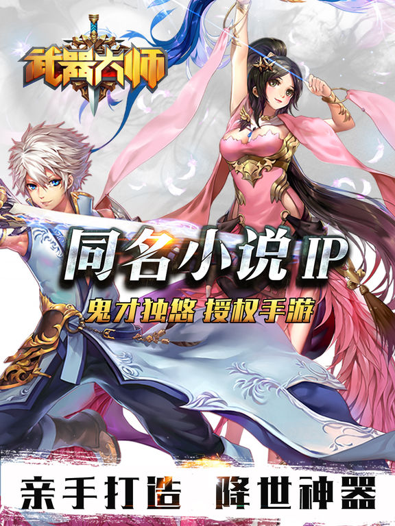 你将亲手打造屠龙刀、倚天剑、方天画戟,你将亲历一款款绝世神兵在指尖出世的全过程! 群雄激战魔主焚天,八大魔王横空出世,百万神兵请君莅临天铸城、荡平铸剑谷、横扫荣耀大陆,一代武器大师锤炼问世! 2016年初,最值得关注的国产原创手游力作,同名百万人气小说火爆连载! 《武器大师》是一款采用Unity3D引擎打造的全新工艺级手游。游戏以打造武器为核心玩点,让玩家参与、操控打造武器的全过程,并亲手打造出不同外形、不同属性的神兵利器。除此之外,游戏还以无与伦比的3D游戏画面、冲击视觉的满屏技能特效、热血沸腾的策略战斗、史无前例的神兵收集玩法,给玩家们展示最原创、最火爆的玩点! 【游戏特色】 -同名网络小说火爆连载 掌阅白金写手独悠执笔,手游与小说完美同步制作,剧情环环相扣,内容一一对应,这一次我们拒绝冠名式的虚假IP代言!另外,玩游戏,看小说,乐趣多,福利也多! -创新玩法,工艺级手游 革新审美疲劳,飞火流星的兵器锻造流水线真实再现,熔炼、画形、锻造、附魔,仿真兵器打造工艺由你亲手掌控!打造神兵利器还是菜刀,完全取决于你的即时操作! -策略战斗,满屏技能特效 十八般兵器,全部都融进循环相克攻模式,远、中、近,三种类型武器可根据战况随时切换!满屏技能特效,重新定义大招的含义,千影斩杀不让拳皇终极奥义!