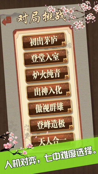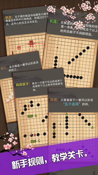 五子棋是一款从古流传至今的两人对弈益智游戏,讲究的是有攻有守,古色古香的游戏界面带你重温经典,特色如下: 1.支持人机对弈,双人对弈,杀法和冲关 2.人机对弈分为四个不同的难度级别,高强的人工智能迎战不同阶段的选手 3.杀法和冲关模式针对爱挑战的人士,告别单调玩法 4.支持两种落子方式,放大落子和直接落子 5.游戏自动存盘,不用担心非正常退出的困扰 6.实时关注全世界五子棋高手的排名,与他们共同竞技 7.随时随地分享战况到朋友圈,迎接好友挑战