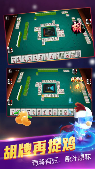 有鸡有豆胡牌再捉鸡地道贵阳捉鸡麻将,玩法和血战到底相似。 贵阳捉鸡麻将最早起源于“川麻将”,经过创新,增加了“捉鸡”、“通行证”、“金鸡”等特色元素。 此种麻将新型玩法,迅速串红于云南、贵州、四川、附近一带,尤其盛行于贵州省,所以“贵阳川麻将”也叫“贵阳捉鸡麻将”。 如今,贵阳捉鸡麻将以其独特的玩法,绝对刺激的游戏规则得到全国各地麻友的推崇!是最具特色的麻将玩法之一! 永久免费:免费下载,实时领取免费任务,活动,快速变土豪。 省电省流量:全面优化,手机不发烫,省钱省心,还送流量哦 快速游戏:万人同时在线,秒匹配。 独家特点:支持扯牌双击自动排序,有鸡有豆,让您趣味无限。 特色音效:本地方言报牌,诙谐有趣。 精美画面:真实麻将牌桌,舒适操作,五星体验。 超多惊喜:活动、任务、福利送不停,更多惊喜等你来,玩游戏更带劲!