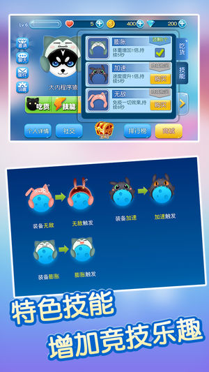 游戏特色: 《吃货星球》是一款简单容易上瘾,多人在线,实时对战的游戏。只要比别人大就可以吃掉对方。吃的越多,体积越大。谁能霸占全屏,成为全星球最重的吃货。 多人游戏---同全球玩家实时对战,吃掉别人,成为世界上最重的人。 即开即玩---战斗随时在进行,无需等待,立即开始。 团队合作---单人游戏太寂寞? 和小伙伴一们互相配合称霸全服。 独特技能---加速、无敌各种技能让你在追击、逃跑事半功倍,乐趣无穷。 个性皮肤---几十款皮肤各具特色,呆萌的、酷炫的、可爱的,彰显你的个性。 玩家说 “其实第一次听说这个游戏的时候我是拒绝的,因为你不能让我玩,我就马上玩。没想到刚看到画面就duang一下吸…