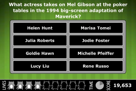 MovieCat WINS 148apps.com's BEST APP EVER AWARD 2012 for trivia games!! May, 2012 - PCMag.com puts MovieCat on its The 25 Best iPhone Games list, along with heavyweights such as Angry Birds, Cut the Rope and Infinity Blade! SALE!!! MOVIECAT IS 33% OFF!!! TOUCH ARCADE SELECTS MOVIECAT AS A 2010 STAFF FAVORITE! If you're at all interested in movie trivia, this is the game to get. *** 8 out of 10 (Great) - Pure gold... If you love movie trivia, get MovieCat. - IGN *** 5 out of 5 - All of the illustrations are ridiculously awesome and are what put this app way, way above other trivia games... If you’re at all a movie lover like me, then you’re going to love this app to an embarrassing degree. - App Safari *** 4 out of 4 - Must Have! MovieCat! absolutely nails what's essential for any trivia game: It has an incredible variety of trivia questions, at just the right level of obscurity, and delivered in several interesting ways. - Slide To Play *** ADDICTIVE!... It might sound corny but I had trouble putting MovieCat! down. That’s how much it hooked me... If you like movies, this really is an unmissable purchase. I haven’t had this much fun with a trivia game for a long time. - 148apps *** MovieCat! is a breath of fresh air... If you consider yourself a movie buff at all, you'll have a blast with MovieCat!... I've been having a ton of fun with the game, and highly recommend it to anyone who enjoys movie trivia. - Touch Arcade *** The app is so stylized and so well-polished... All movie buffs and cat lovers should download this app right meow, as it’s absolutely purrfect for a paws in your workday. - MacLife *** Completely addictive; I played straight for several days... iPhone trivia gaming gold! - Webomatica *** I can’t stop playing... I am utterly in love with this game. I am already a closet trivia hound, but this makes everything adorable. - Hot Wet Apps *** It's the presentation of MovieCat! that makes this quiz title really stand out... MovieCat! is an excellent title packed with fun questions... - AppSpy *** You will have hours of excitement and fun while playing with this game. - AppNews.org *** Became the #1 trivia app in its first week of release! DESCRIPTION: MovieCat is a movie trivia game that stands apart from the rest! Test your trivia knowledge with a variety of text questions, as well as visual puzzles and scenes featuring our kitty cast of MovieCat players! Start each game with nine lives and try to get through all five rounds of puzzles, in order to reach one of the bonus unlockable Cat Scenes at the end of the game. If you unlock a Cat Scene, you can email the scene to your friends and download it to your photo library! From the creator of FilmWise.com and the Invisibles, Childs Play, and What's Missing puzzles, which have been featured in Entertainment Weekly, USA Today, Maxim, FHM, Esquire, Giant, Empire UK, and many other newspapers and magazines around the world! FEATURES: * Hundreds of unique text and visual puzzles for hours of fun! * 14 different puzzle categories! * 10 unlockable Cat Scenes! * Puzzle Packs, which include hundreds of new puzzles and extra Cat Scenes, are available in the in-app MovieCat Mall! * Three difficulty levels! * Post your scores and see how you compare to the leaders in all three difficulty levels! * Post your scores to Facebook and challenge your friends to beat your scores! * Furrier than Jeopardy! * Friskier than Trivial Pursuit! * More hair-ball than Family Feud! * Whiskerier than You Don't Know Jack! * Who needs Angry Birds when you can have Movie Cats?? www.moviecatgame.com Follow us on Facebook!