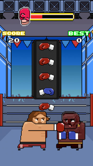 This is a very simple game with simple rules. Just need move your finger to left,right and down. Make the two men boxing for ever.