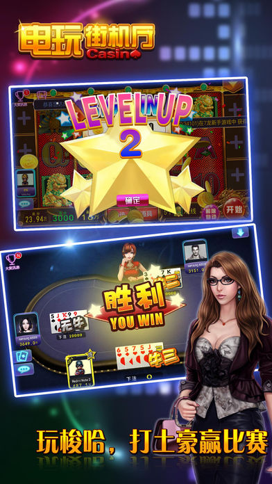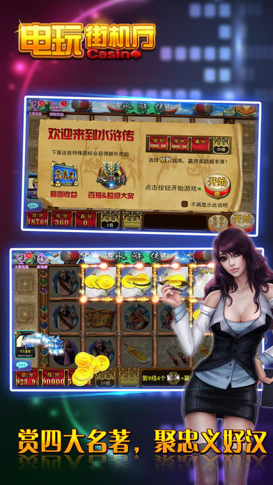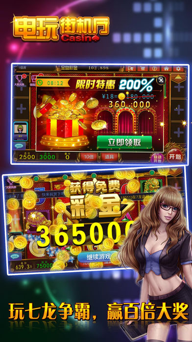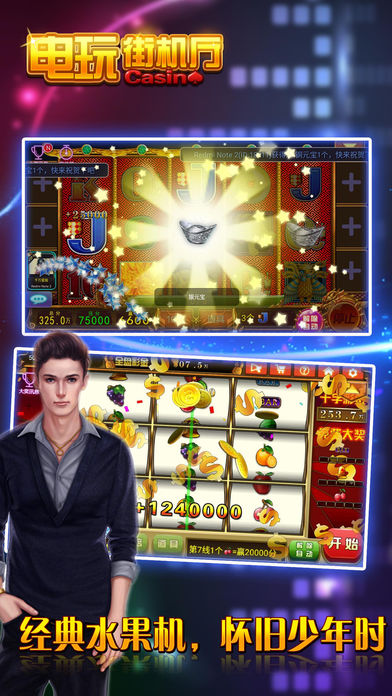 《电玩街机厅》是一款包涵了七龙争霸、水浒传、明星97水果机、炸金花赢三张、欢乐牛牛、梭哈港式五张等六款明星娱乐游戏的电玩城合集。将澳门银河娱乐城最纯正的玩法100%经典移植。 上手快,娱乐性强,玩法简单,中奖率高,紧张刺激的游戏过程中,可充分的体验到下注与博彩中奖的爽快感觉!最流行的街机游戏,最激情的电玩娱乐城,考验智慧,以小搏大,独特上亿元彩金池,等你下注撞大运,万人同时在线自动配桌,令你游戏妙趣横生! 【多种澳门原版水果机合集】 水果机又称老虎机是一种用零钱赌博的游艺机。在澳门娱乐城有各式各样不同玩法的水果机老虎机。《电玩街机厅》将这些好玩、刺激的老虎机水果机一网打尽,100%完美移植。七龙争霸、水浒传、明星97水果机,不同玩法,爽快非常! 【无需充值登录即送海量筹码】 《电玩街机厅》无需注册即可进入,进入立即领取海量筹码,无需充值即可立即开始体验电玩城的乐趣,每隔一定在线时间还可额外领取几千甚至上万元的游戏筹码,让你来的开心,玩的舒心! 【Big Win、小玛丽惊喜暴富乐趣】 各种游戏均有特殊“Big Win”设计,下注金额高倍偿还。进入多连线、全盘赢等模式立即开启Big Win!带领你入无敌赚钱模式,疯狂小游戏,玛丽时时有,爽快赚钱一把翻身,体验极致享受! 【万人在线平台同场竞技】 《电玩街机厅》支持万人同时在线游戏,坐在同一赌桌,玩家和玩家直接直面博弈,人与人赌乐趣无穷,三种最火爆的扑克玩法:欢乐牛牛、炸金花赢三张、梭哈港式五张一应俱全,让你体验成为赌神的快感! 【多种倍率场自由选台押注】 多种倍率房间让玩家各取所需,让大老板享受VIP尊贵包厢专场,房间倍率不同押注基础不同,玩家可自由选择自主选台,通过观察对手揣摩对方牌面,博手气、拼实力、判断加运气,爱拼才会赢! ===游艺机介绍=== 【老虎机系列】 《七龙争霸》 高投资,高回报。酷炫243条能够让你一键暴富。 七龙每一种都让您惊喜无限! 《明星97》 三轴七线高赢率,游戏彩蛋不间断。 分分钟让你穿起貂皮大氅。 《水浒传》 九线连财路,对连奖不断; 玛丽时时有,全盘霸江山。 【扑克牌系列】 《欢乐牛牛》 简单的操作;快速的对局。 闲家倍率调整,用计算和技术征服全场。 《赢三张》 决胜负,泯恩仇 不成仁,变成鬼 流畅的节奏,胆识的挑战。 博一博,对子变豹子,输与赢就在一瞬间。 《港式五张》 公平竞争,进入游戏自动配桌。 三分运气,七分实力,私人包厢,尊贵独享。