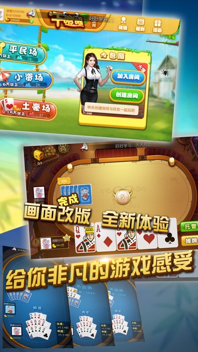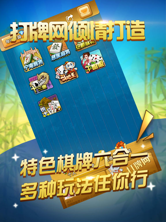 【打牌网游戏大厅】 慈溪、安顺、宁海等麻将,遵照原汁原味的游戏规则,还原当地方言口音,做出本地人自己的麻将游戏。包厢组局,随时随地,尽情游戏。拼十、十三道、干瞪眼等公共游戏,玩法简单,欢乐无穷。开启您的游戏之旅,享受简单的快乐吧! 官方客服电话:4008780666