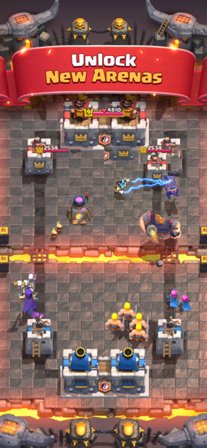 《皇室战争》是由芬兰知名游戏公司“超级细胞”(Supercell)推出,以《部落冲突》的角色和世界观为原型,加入即时策略、MOBA以及卡牌等多种元素的休闲对战手游。《皇室战争》凭借其独创玩法在全球范围内大受欢迎,游戏简单易上手,同时蕴含着多种丰富的策略,分秒必争的战局将给您带来源源不绝的刺激体验! 请注意!《皇室战争》是一款免费游戏,但您也可以使用真实货币购买一些游戏道具。如果您不想使用该功能,请在设备的设置中禁用应用内购买。此外,根据我们的《服务条款》和《隐私政策》,您必须年满13周岁才能下载或体验《皇室战争》。 • 多种强力卡牌,玩转深度策略 不管是憨态可掬的飞龙宝宝、英气逼…