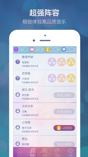 ◆【音乐白块儿2:音乐达人,全新来袭】◆ 这是时下最流行的休闲、娱乐、打发时间神器!全新的玩法、精美的界面,相信每个音乐达人都会爱不释手! ◆各种时下最流行音乐(我们会持续添加更新游戏...) ◆全新设计的精美界面和玩法,简单易玩,老少皆宜。 ◆顺畅的游戏体验和绝佳的手感。 ◆长按的音乐游戏玩法和别踩白块儿经典玩法相结合,给您更多选择! 这个游戏很容易上瘾,简单耐玩过程精彩,如果你喜欢就赶快下载下来玩吧! 游戏音乐我们会持续添加更新! 官方邮箱:ahjiang_2006@163.com