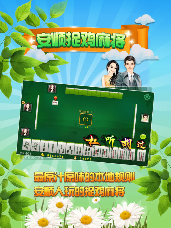 原汁原味的安顺本地特色游戏—【安顺捉鸡麻将】,火爆来袭!!! 麻将规则符合安顺本地玩法。冲锋鸡,热炮,报听,点豆,闷豆,转弯豆等特色等你来体验! 游戏界面简洁美观,竞技比拼,活动丰富,让你对游戏更加有挑战性。真人语音效果带给你身临其境的游戏体验。 让我们享受简单的快乐 官方QQ群:340092242 联系客服MM:4008780666