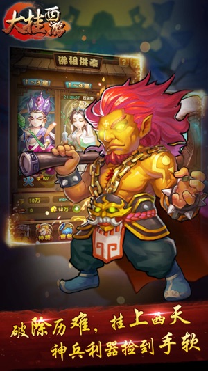 《大挂西游》是一款放置类回合挂机手游。玩家可以在游戏中挂机升级、排兵布阵、挑战各色Boss,还可以收集各色神将、培养自己的专属互道者。 游戏采用回合式挂机玩法,让玩家无需为升级和装备而忧。同时还加入了镇妖塔等特殊Boss挑战玩法。让玩家在挂机之余还可以主动降妖伏魔、获取首杀,名留镇妖塔。闲暇之余玩家还可以建宗立派、在斗法台上一决高下,从藏宝阁中换取惊世宝物锻造至强法宝。 游戏主要战斗模式为5V5模式,战斗双方最多同时上阵5名神将或怪物,双方神将可以9宫格阵型中自由排布。对于智商达人而言,完全可以针对敌方弱点布置阵型,满足以弱胜强的成就感。 玄幻的西游背景,多选择的神将转…