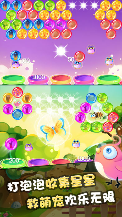 《泡泡射手》这是一款传承经典并融入诸多新玩法、新道具的全新泡泡龙游戏,它必将带领你走进一个独特和极具挑战的游戏世界。 如果你对传统的模式已经驾熟就轻,如果你想挑战更刺激和更高的难度,那就绝对不能错过这款游戏! 玩家只需要在游戏中通过瞄准射击的方式来消除同色泡泡并完成收集星星或者解救动物的任务即可过关,同时还有各类道具泡泡。如:黑洞球、铁球、冰球、炸弹球、蝙蝠球、眨眼怪、病毒球、变色球、蜥蜴怪和行变球等障碍类泡泡,使得游戏的关卡挑战有了飞跃性地提升,而游戏的乐趣也层出不穷。 赶快下载来玩玩看,绝对让你欲罢不能!