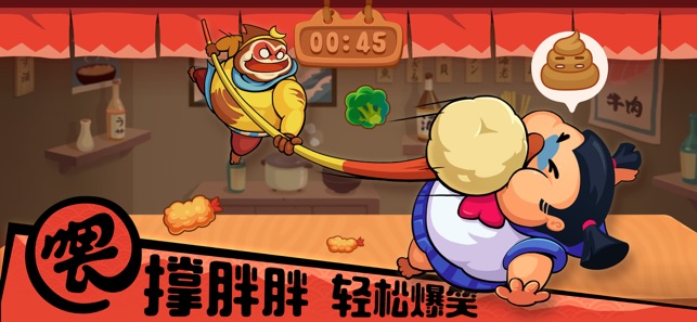 这是一场吃货间的战斗, 戳杆子去串食物然后喂到对方嘴里, 谁先把对方喂到吃不下东西就赢了! 【吃货大赛】 一场胖子之间的荣誉之战!! 你想要是吃呆?吃货?还是食神呢!? 【好友对战】 想喂胖远方的好友? 对个暗号你们就可以亲密喂食啦! 【联机对战】 一个人的时候,也想来一盘? 落单的胖友们,一起来联网互喂吧! 【双人同屏对战】 拉上你的好朋友一起感受双人同屏对战的乐趣吧~ (注意喔,玩这游戏很容易就手碰手了!你懂得...) 【超多皮肤】 想不想看悟空从一个瘦猴子吃成一个大胖猴? 想不想看机器人也能像人类一样吃肥? 想不想…… 有趣的皮肤太多啦~自己来玩吧~ 【双手比心】 我们希望这…