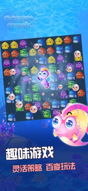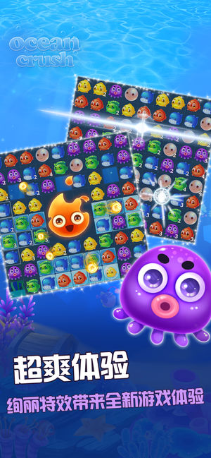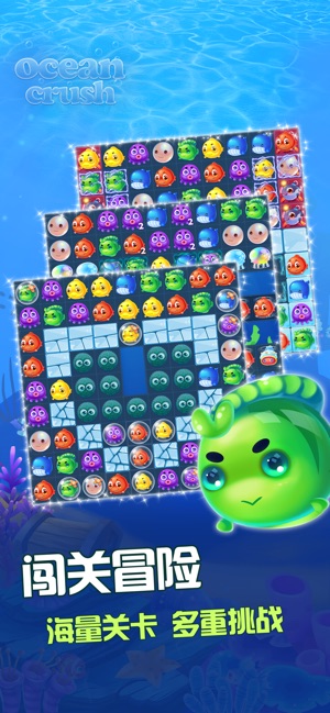 风靡的经典消除游戏!精美画面,生动特效! 600关卡、30多种障碍设计,挑战你的IQ! 1. 经典的消除规则:在游戏中,交换相邻小鱼使3个或以上的同种小鱼横向或纵向相连来进行消除! 2. 创新的策略玩法:海量关卡和丰富的玩法设计使游戏具有强大的可玩性,多样的道具以及绚丽的特效为你带来最佳的游戏体验! 3. 丰富的道具奖励:邀请你的小伙伴一起游戏不仅让你的游戏旅程更加完美,更可以得到丰厚奖励哦! 这款游戏让你在放松身心的同时锻炼观察和反应能力,何乐不为!画面精美,风格清新可爱,玩法多样,你还等什么呢,赶快下载《海洋消消乐》吧!