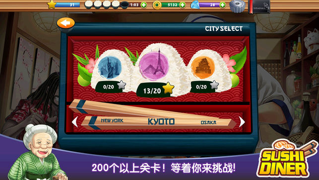 大家都超爱寿司! Sushi Diner是一款有趣的手机经营管理游戏。 欢迎来到Sushi Diner,你将会在世界各地创立经营自己的寿司店王国,推出不同款式的寿司,考验你的反应以及手指的灵活度,及时间管理的技巧! --------------------------- 游戏特色 --------------------------- 你将会到东京,纽约,京都,大阪等地方开设自己的寿司店铺,完成客户的订单! - 精美的画面和超过100个具有挑战性的关卡,新增相朴手BOSS关卡,等着你来挑战! (游戏关卡将会不断更新喔!) - 制作超过150款寿司, 制作搭配军舰卷,刺身,卷物等,例如…