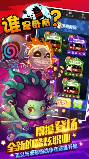 《谁是卧底》又名《天黑请闭眼》、《杀人游戏》;是一款呆萌炫酷、逻辑极强、模式众多的多人在线文字杀人游戏 【游戏特色】 ---多人参与拼智力! 真正的多人在线大型杀人游戏,真正的公平快速的文字游戏!不用再害怕人员不齐和场外因素!带上你的判断、你的推理,来谁是卧底比拼智力吧! ---超多职业任你选! 游戏中三大阵营,十余种职业,多种模式随心选择!每种职业都有不同的玩法与技能,游戏独创新模式“怒火街头”,带你领略爆炸的快感! ---在线好礼送不停! 只要每天累计在线时间,就能获得大量金豆及银币!更有机会获得商城的精美时装及特效炫酷的道具!不花钱也能玩的很开心耶! ---超萌宠物求包养! 超赞的宠物系…