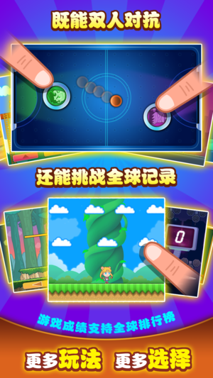 《激萌英雄大作战》,带给你超有趣的双人同屏对战体验! 谁说正义不能呆萌,邪恶无法逗比?激萌风的英雄各个神奇,选择你喜欢的阵营,挑选你中意的英雄,愉快的决一雌雄吧! 15款不同类型的精彩对战游戏,你是否已经跃跃欲试了? ◆攻城大师:给我根木棍,我就能拿下一座城池 ◆壮志凌云:为了躲避雾霾,尽力往上跳吧 ◆圣域冒险:雅典娜不在,这些放衣服的箱子都要疯了 ◆海底迷踪:神奇的海底总是充满了危机 ◆魔法平台:平台有魔法,行走需谨慎 ◆疯狂桌球:小小球,大技巧 ◆星战奇兵:想成为掘地武士?好好锻炼身体吧 ◆平衡大战: 微操做神点击 ◆星际迷航:迷航不要紧,但这些陨石真让人头痛 ◆飞跃火线:这让人抓狂的飞…