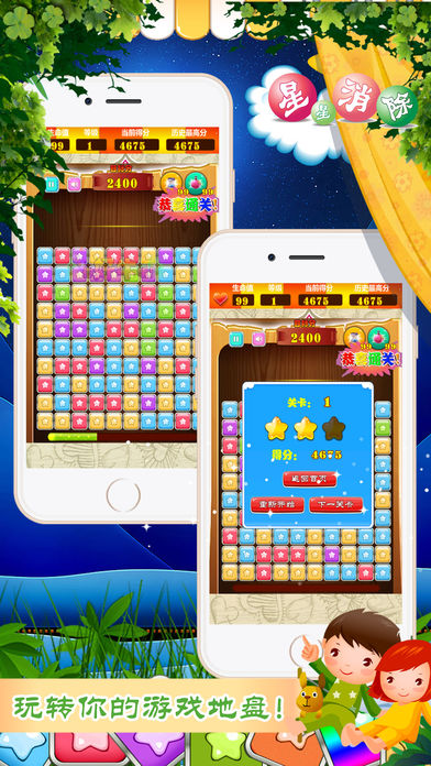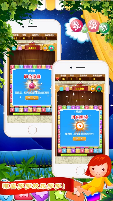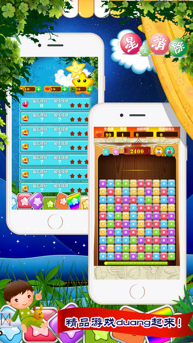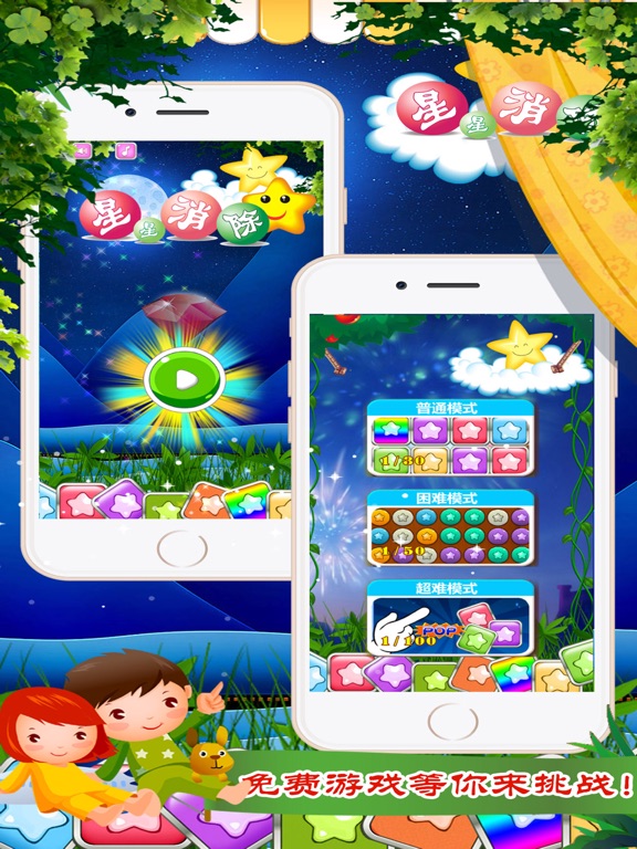 星星消除是一款很锻炼脑力的消除类益智休闲游戏!现在iphone版的风暴已经闪电来袭!消消乐,消灭星星高手速来挑战! 游戏中你的任务是将同颜色连接在一起的星星消除,点击两个或更多相同的星星可以消除它们即可! 游戏分为三个不同游戏难度等级,无限生命,无限道具,免费要你来体验! 消除星星越多,得分越高。剩余星星越少,奖励分值越高。快拉上你的小伙伴一较高下!