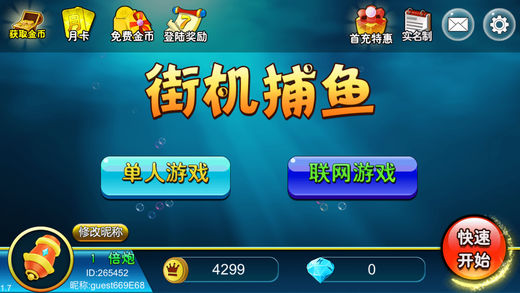 1:2016年最火爆的捕鱼游戏,华丽登场。 2:完美移植街机室多人联机捕鱼,真实联网,超流畅的体验。 3:超刺激的单人闯关模式,神秘的关卡等待你来探索,关卡福利等你领取。 4:100%还原街机捕鱼,改进游戏玩法。 5:每天海量金币免费领取,挑战关卡、完成任务、击杀BOSS都有大奖。 6:超刺激“狂暴技能”、“加速技能”、“锁定技能”、“冰封技能”,更大机会赢走大奖。 7:完美的融合单人闯关游戏与多人联网游戏,让你随心体验不一样的玩法。 ======================================================================== 【游戏特色】 1:自动挂机功能,让你游戏更轻松快乐。 2:召唤功能,让你随心呼唤想打的鱼。 3:各项技能搭配,火力全开,超高机会击杀BOSS,无底线大奖HIGH翻全场。 4:联网游戏简介如下: A:每个房间都有不一样的游戏体验。 B:真人联网,万人竞技,超流畅的体验。 C:锁定技能、冰封技能让你更容易击杀BOSS,赢走大奖。 D:更有丰富的奖金鱼,超刺激的幸运大抽奖,超高的奖励。 5:单人游戏简介如下: A:总计20个神秘的关卡,每一关都有不一样的体验。 B:每通过一关都有超高的奖励,并且每日登陆还可以领取一次红包。 C:加速技能、狂暴技能、锁定技能、冰封技能让你完爆所有的BOSS。 D:神秘的潜艇、超简单的任务,福利送不停。 ========================================================================
