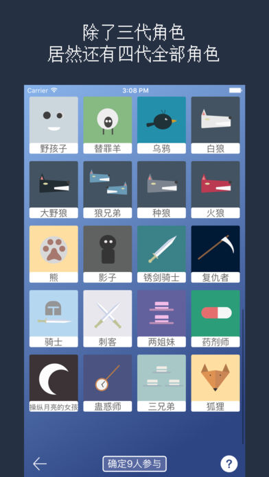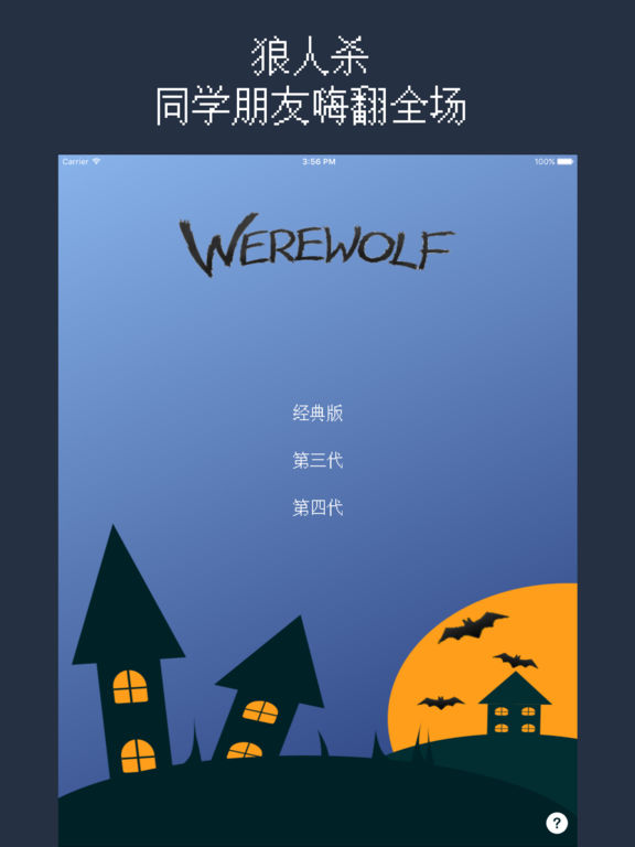 【高级玩家独家定制,快来体验超高质量局】 【三代四代全部角色,32个新月事件,百种整人惩罚】 【操作简单,流程清晰】 内设32种角色:法官,村民,狼人,女巫,丘比特,盗贼,吹笛者,猎人,预言家,白痴,守卫,警长,长老,野孩子,替罪羊,乌鸦,白狼,大野狼,狼兄弟,种狼,火狼,熊,影子,袖箭骑士,复仇者,骑士,刺客,两姐妹,药剂师,操纵月亮的女孩,蛊惑师,三兄弟,狐狸。 下载狼人杀,和同学嗨到爆! ========== “狼人杀”做为“狼人之夜”“杀人游戏”“天黑请闭眼”的升级,延续经典玩法,融入更多角色,是考验口才,智慧,推理,逻辑能力的团队游戏。 狼人杀终极版,画面简洁,配合桌游狼人杀,展开智慧胆识的较量,法官口令清晰,轻松掌握实时战局,让更多人看到你们的精彩战局!